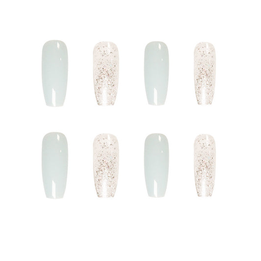 Glossy Blue Glitter Long Ballerina Press-on Nails