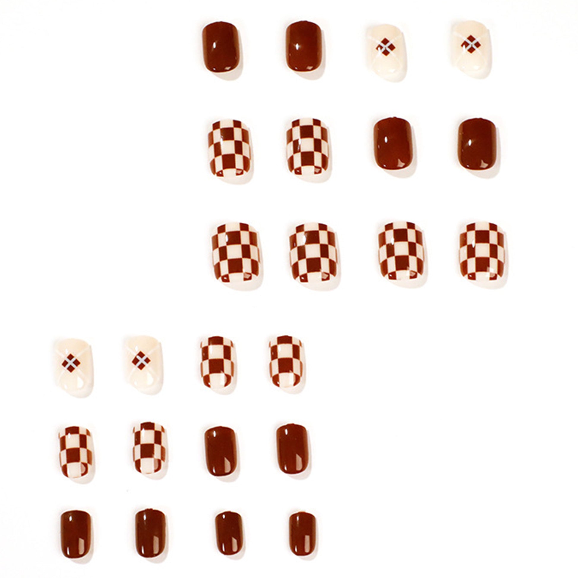 Trendy Brown White Checkerboard Press-on Nails