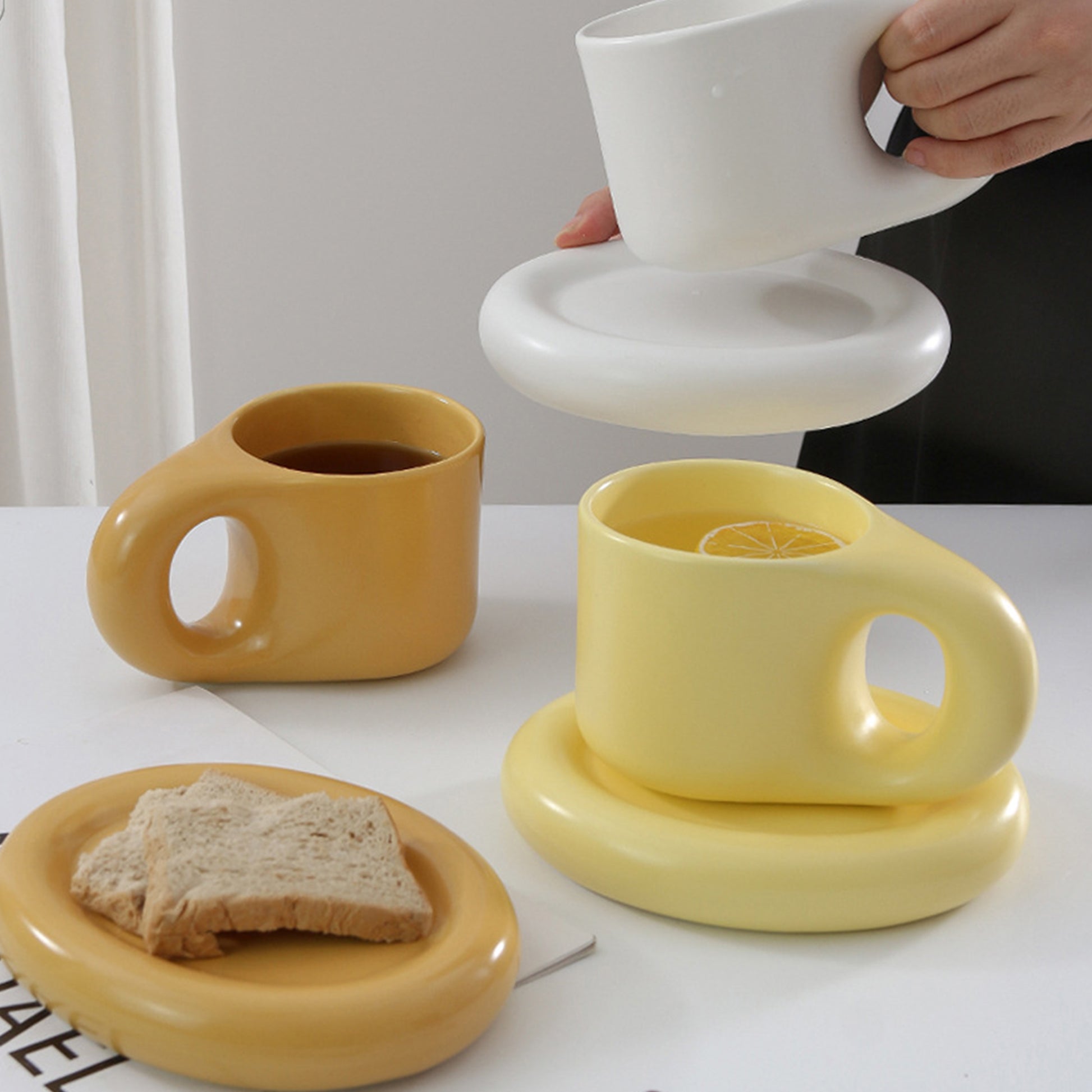 Add Some Style to Your Morning Brew with our Curvy Ceramic Mug and Saucer Set - Perfect for Coffee Lovers Everywhere!