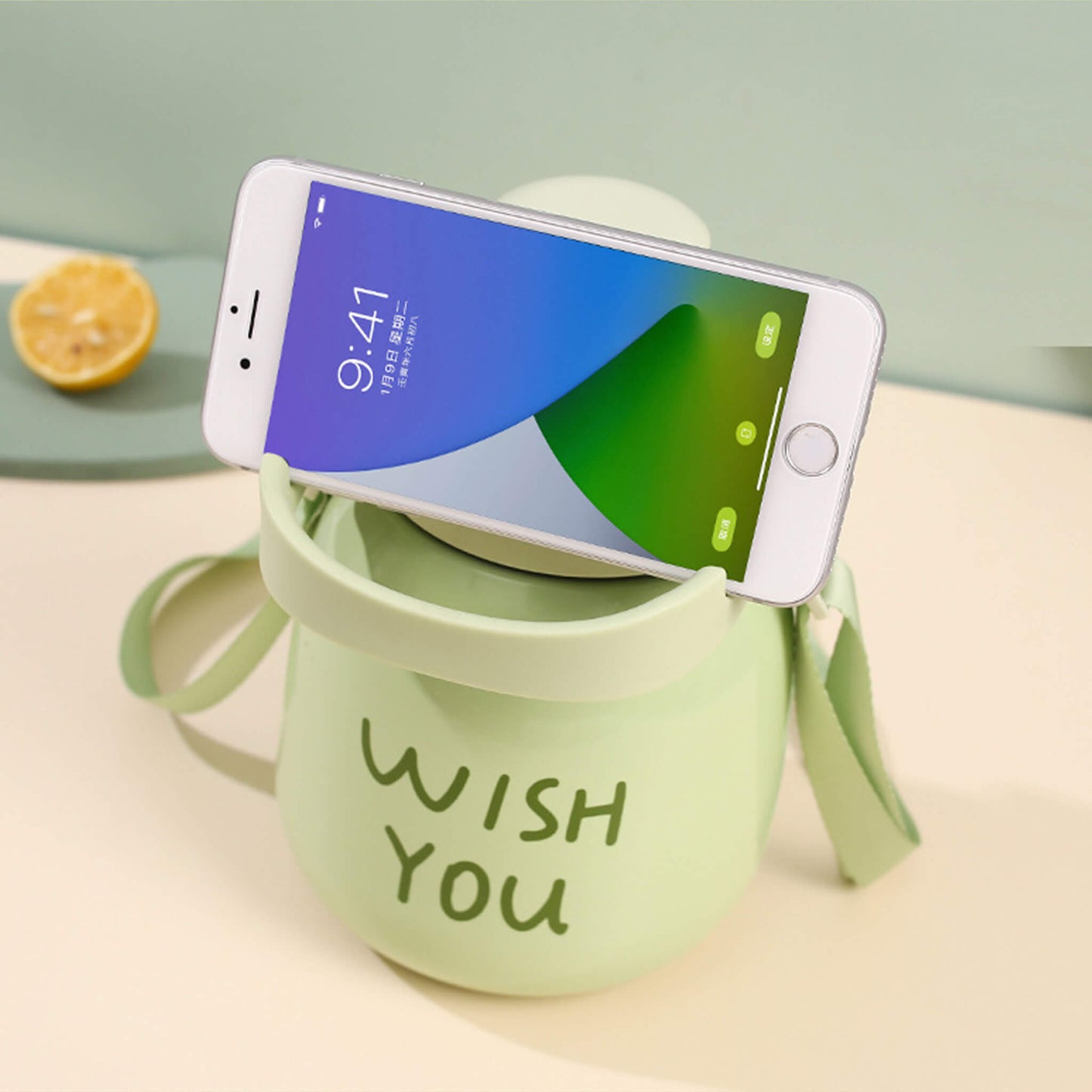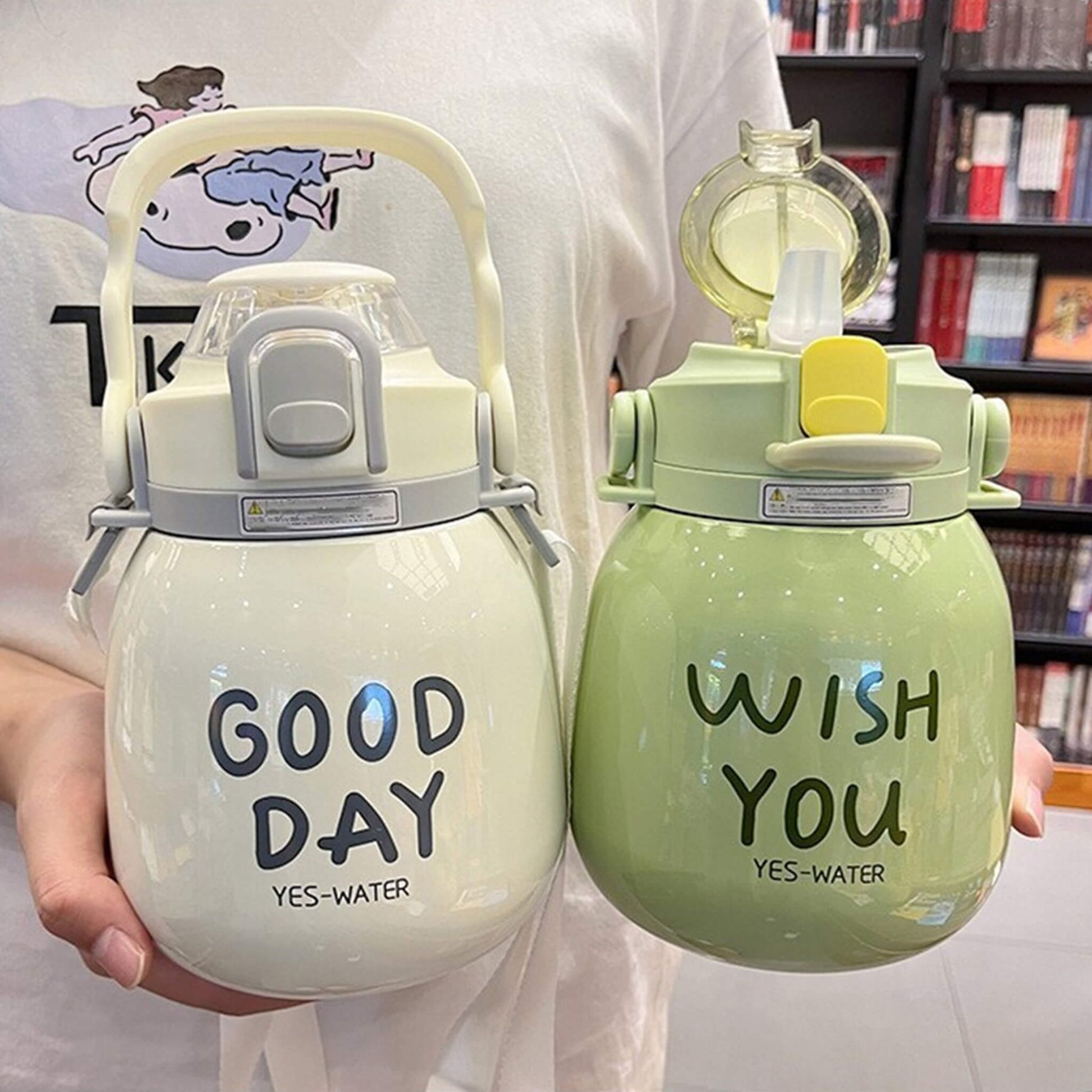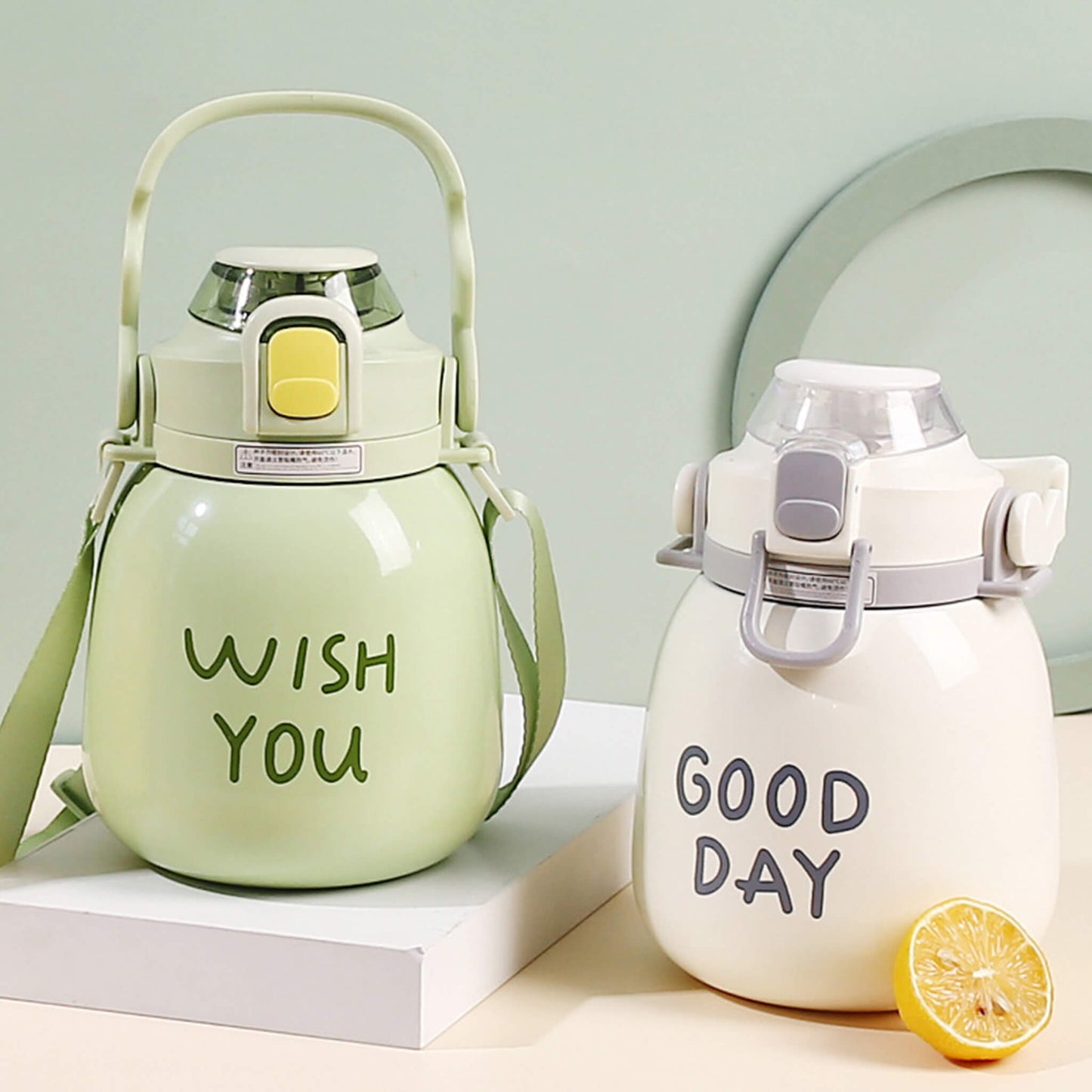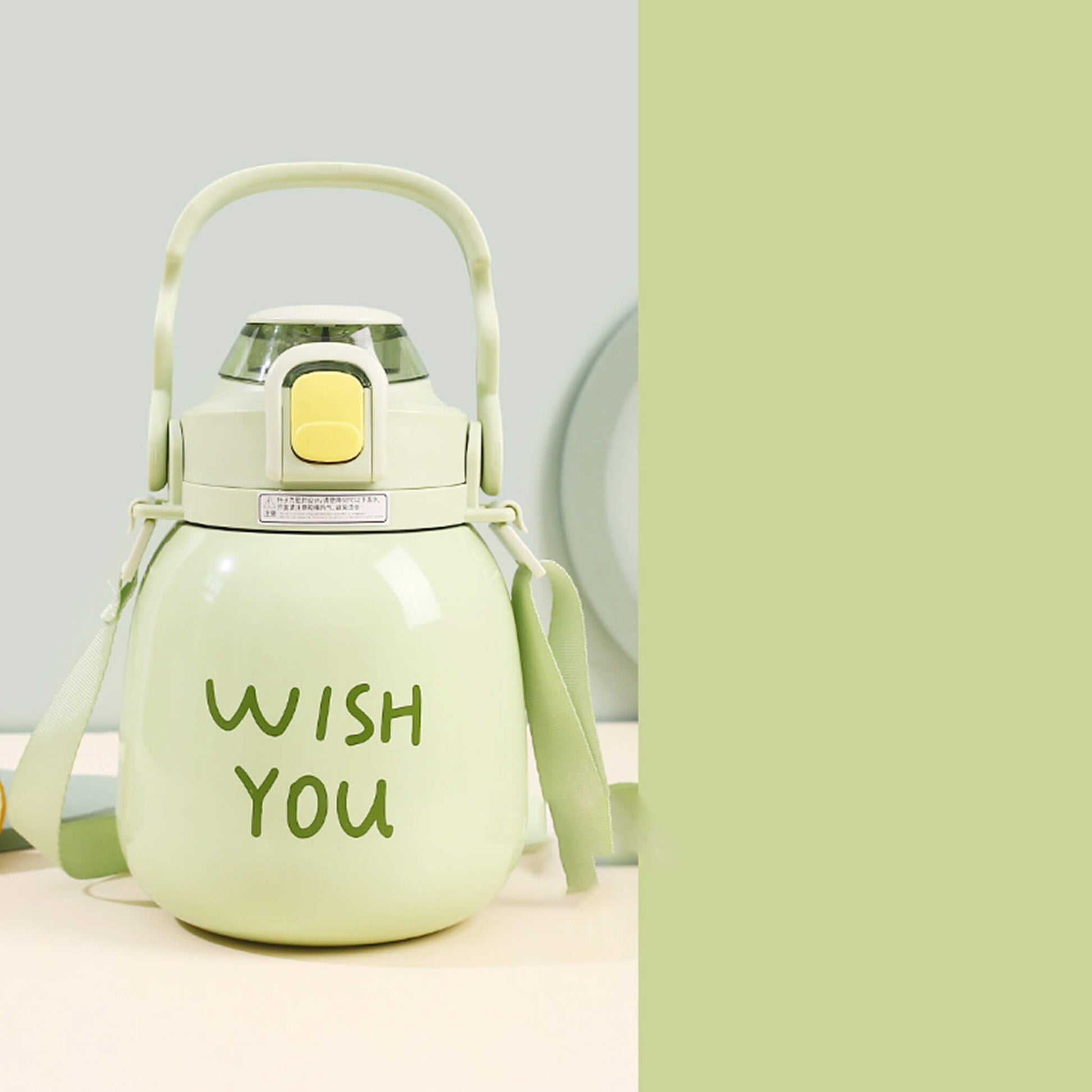 Stylish, durable and easy to clean, our kid back-to-school water bottle comes with a handle and strap silicone pacifier, sure to raise your child's interest in drinking water. Its carrying handle and strap make it easy to carry and its cartoon design adds fun to hydration.