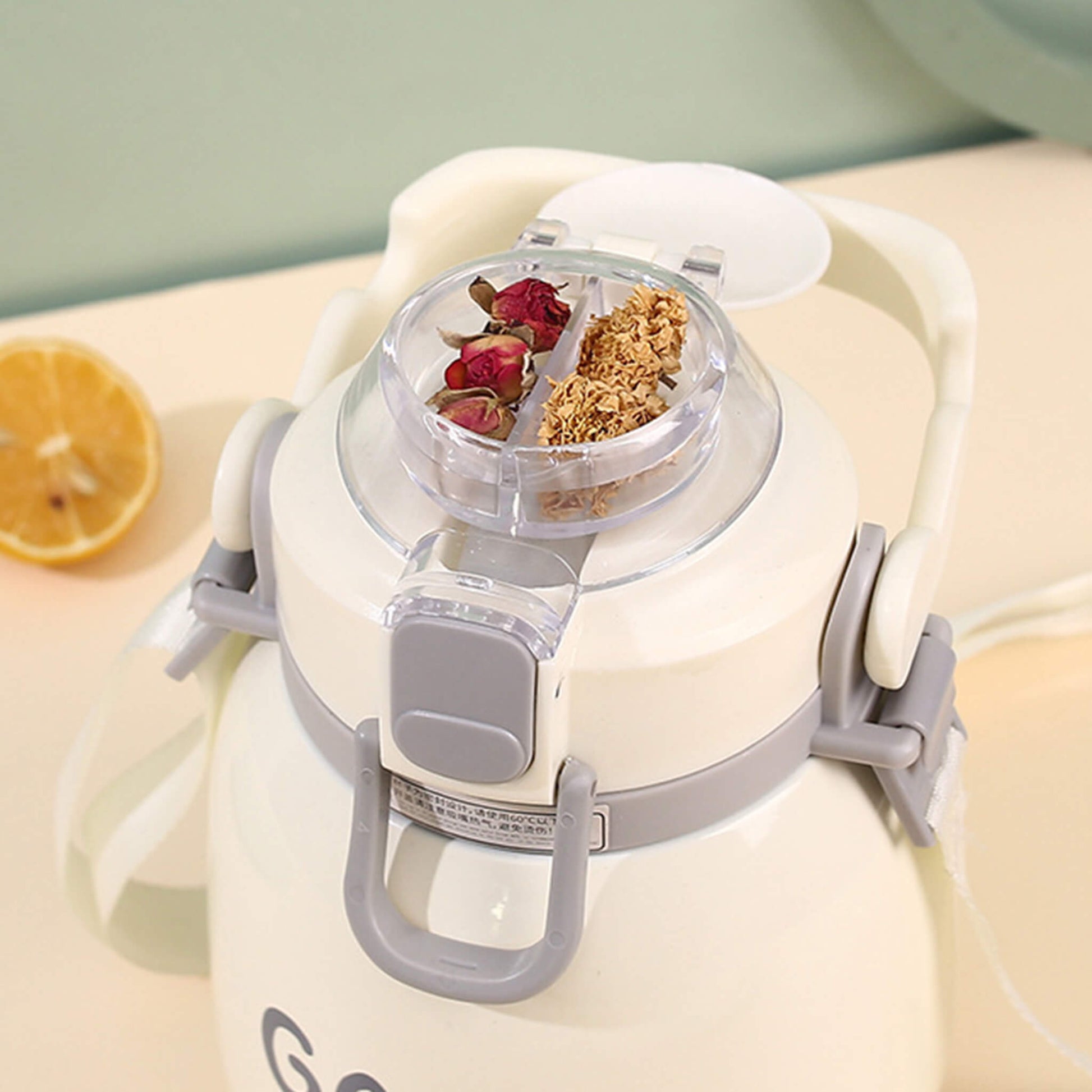 With a 1000ml capacity and stainless steel construction, it's durable, leak-proof, and keeps beverages warm for long periods, perfect for home, school, office, travel, and picnics.