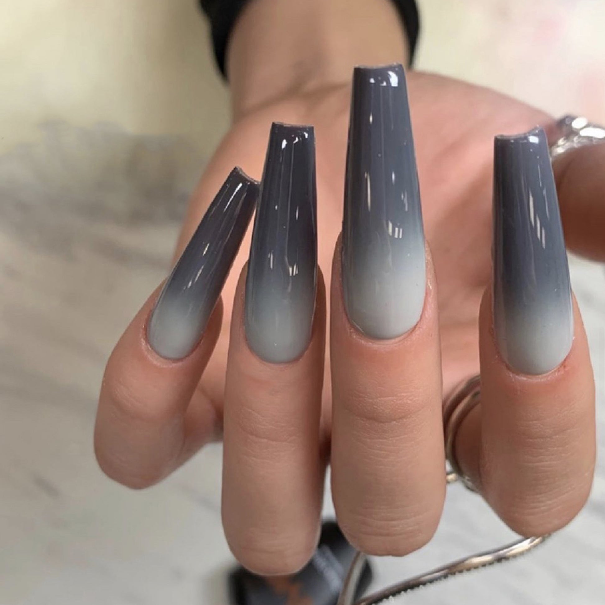 Stunning Gray Gradient Long Ballerina Press-on Nails
