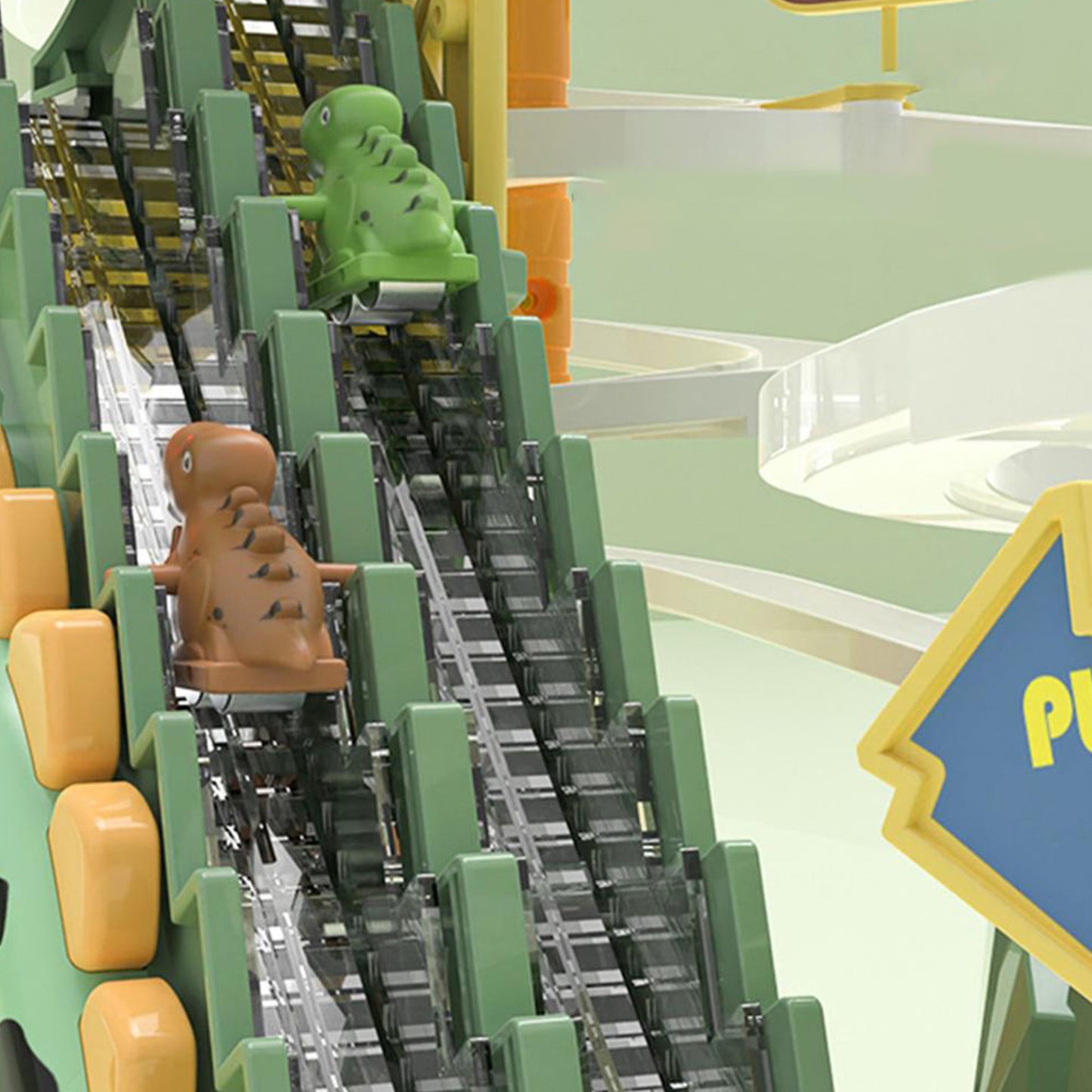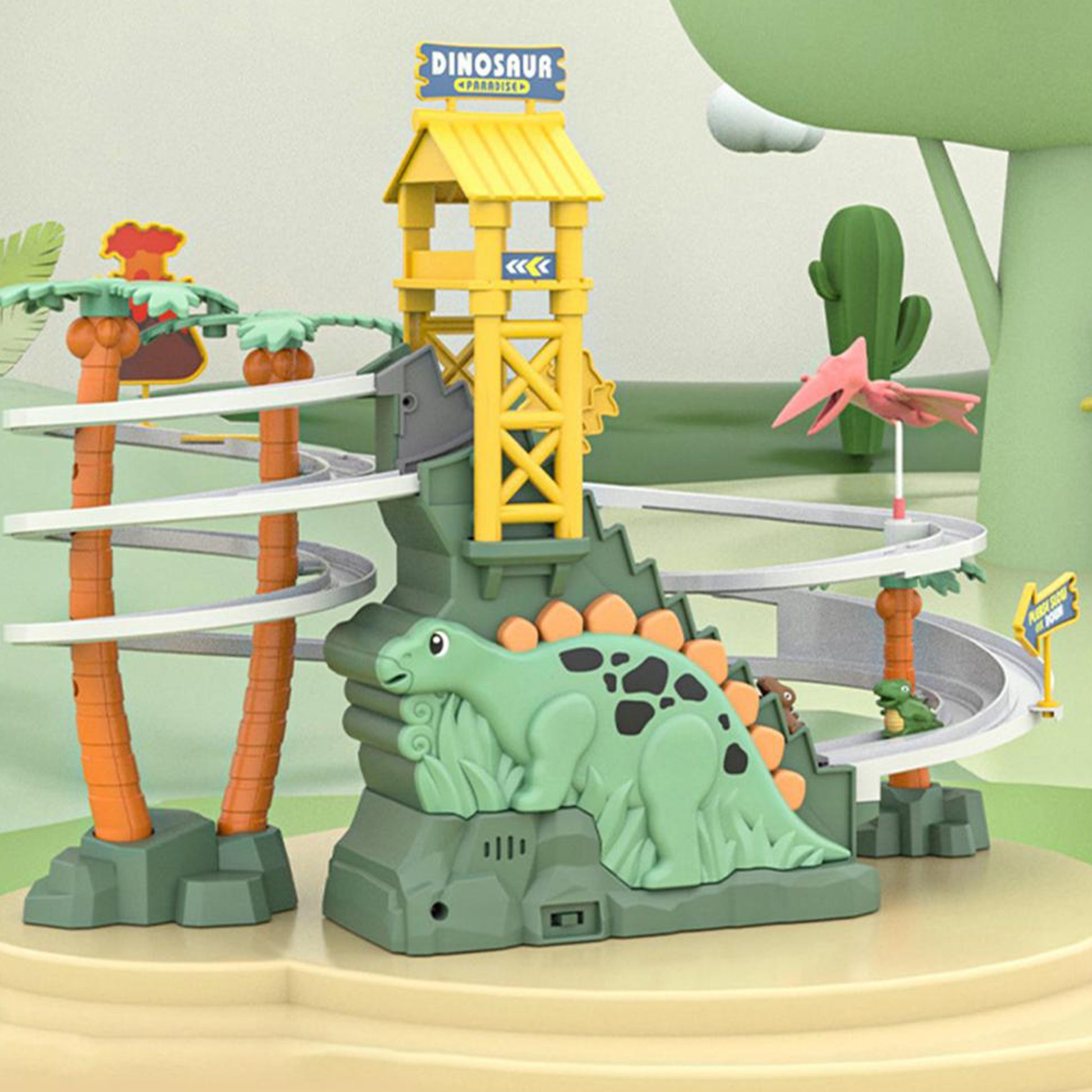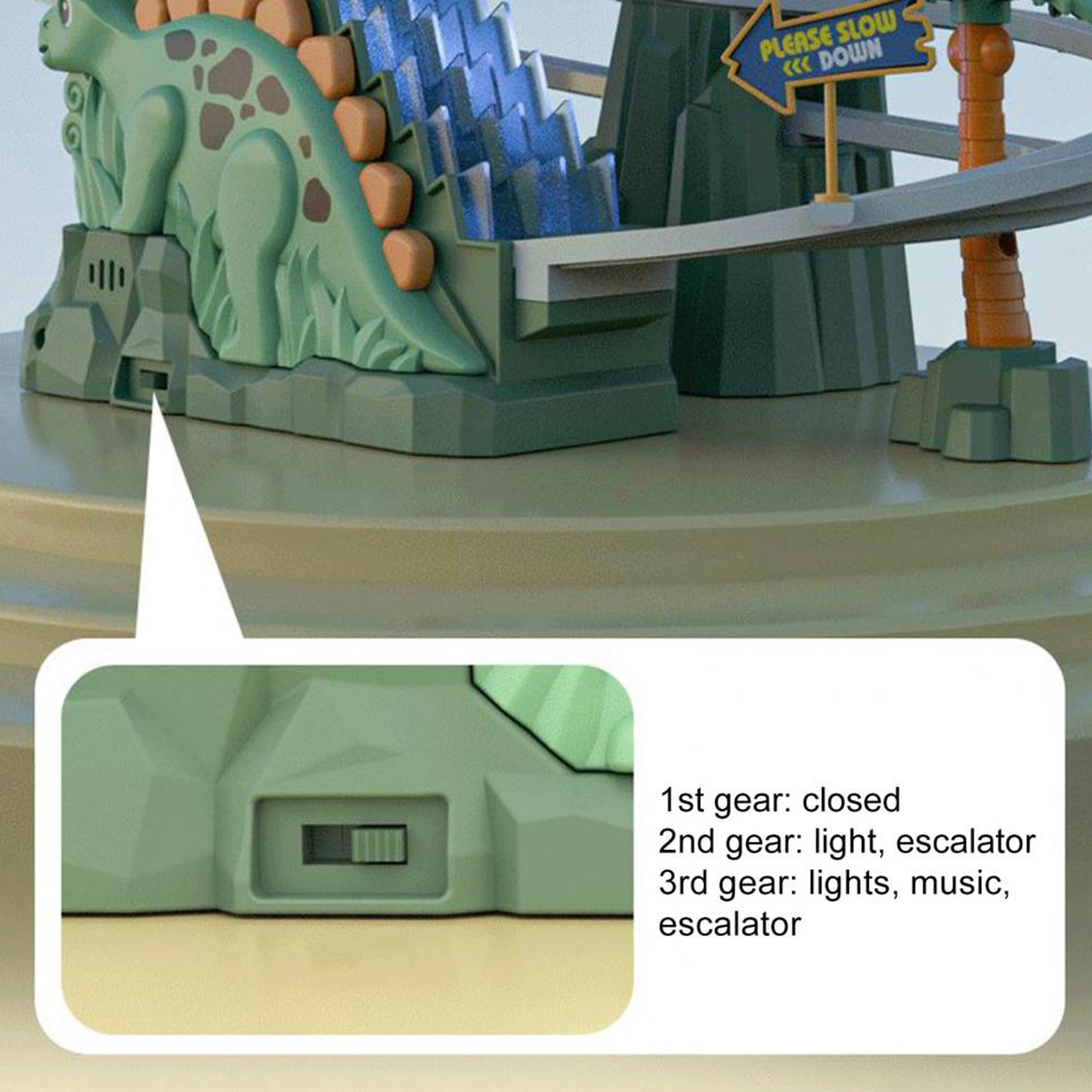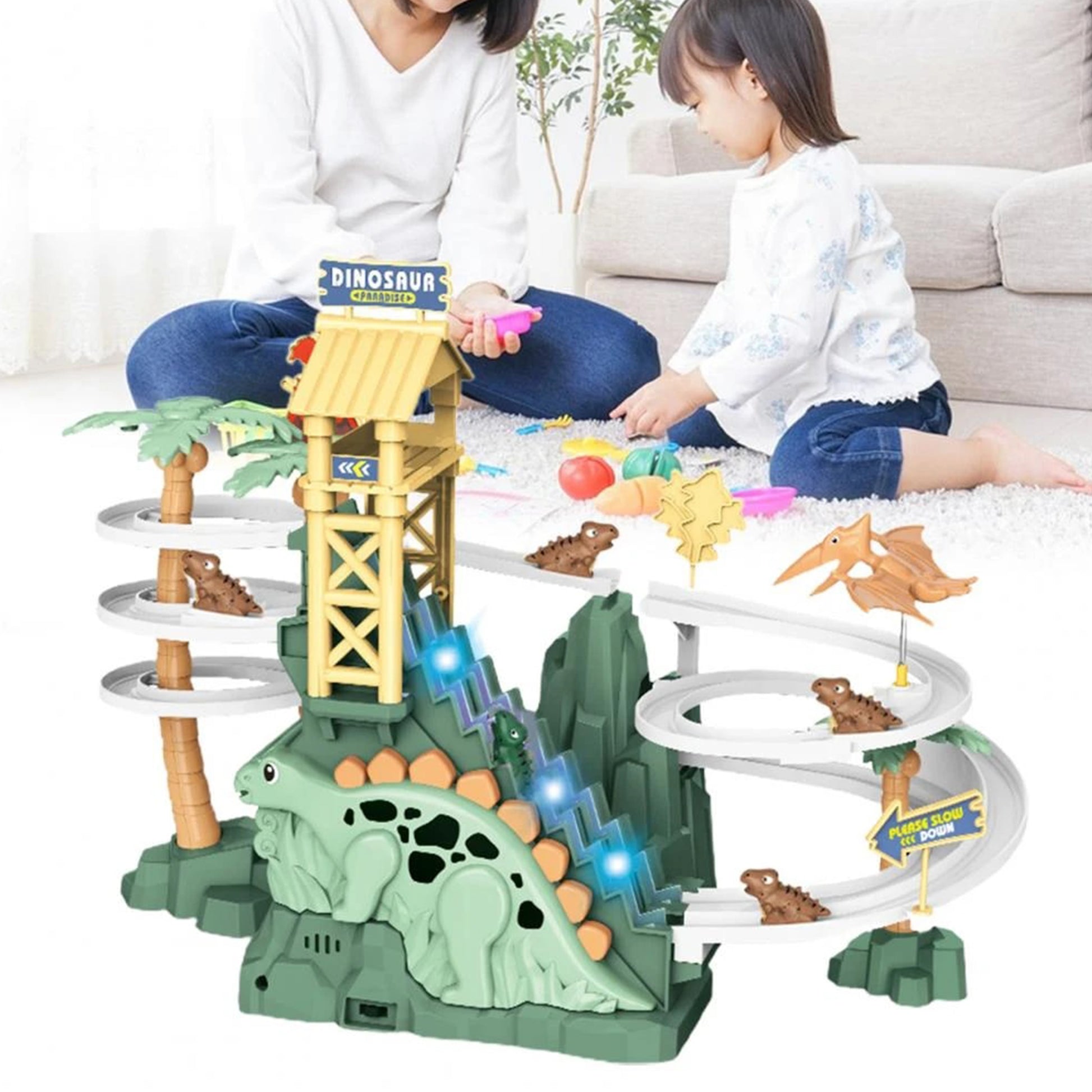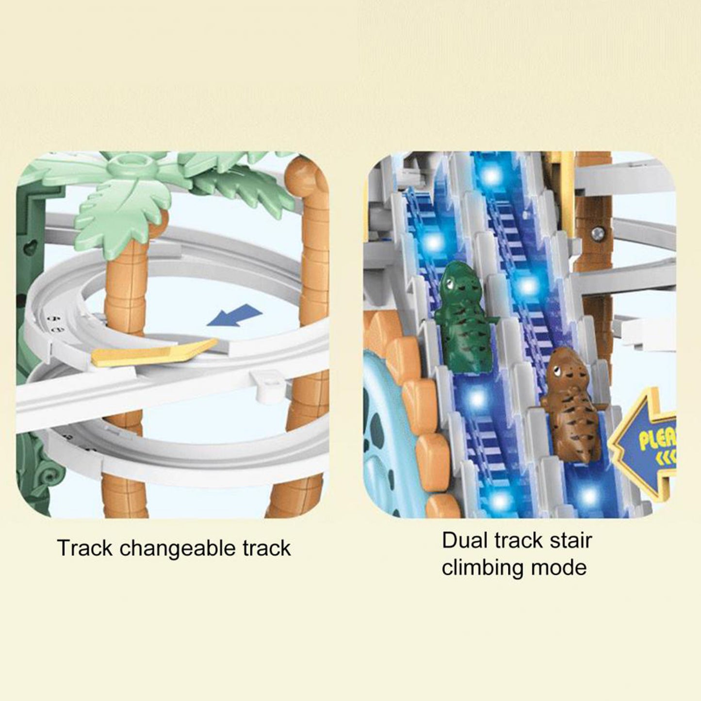 Interactive and Engaging: The electric track toy features 5 little dinosaurs, colorful lights, and dynamic music effects. The climbing stairs are accompanied by music, creating a playful and engaging experience for children.