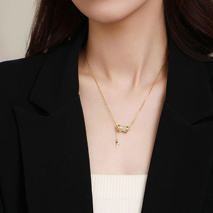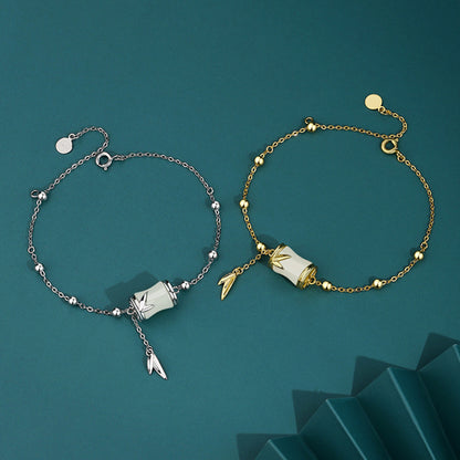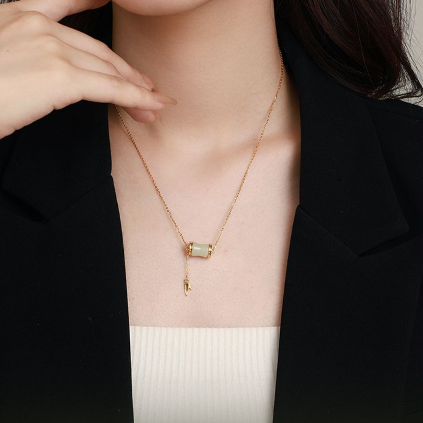Elevate your jewelry collection with this stunning Jade Bamboo Knots Jewelry Set. The set includes a beautiful bracelet and necklace, both crafted from natural Hetian Jade, which is known for its unique colors and patterns. The intricate bamboo knot design is a symbol of strength and resilience, making this set a meaningful and beautiful addition to any outfit.