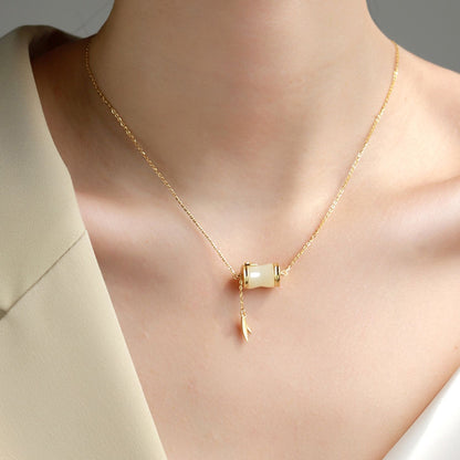 Jade Bamboo Knots Jewelry Set Natural Hetian Jade