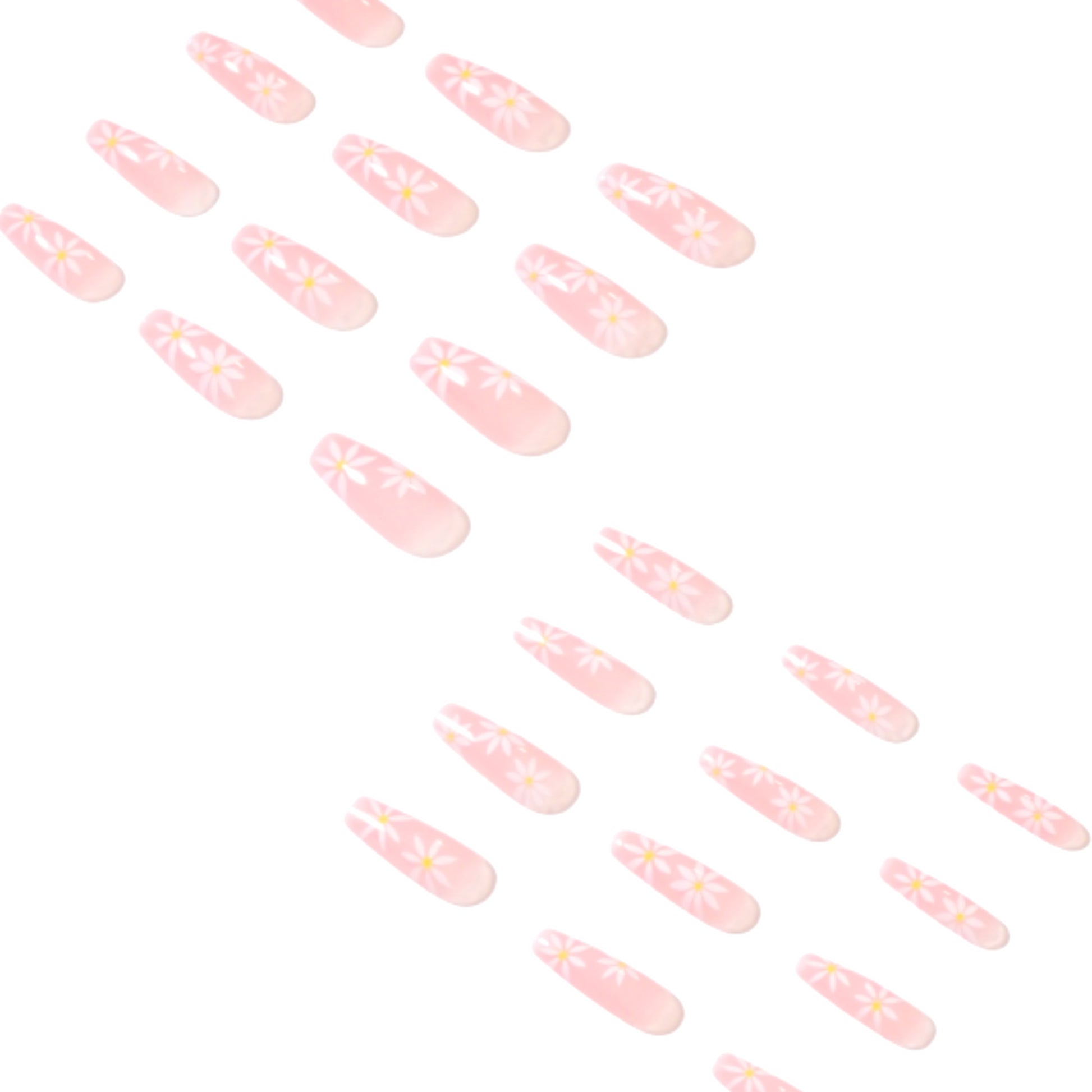 Daisy Pink Medium Square Press-On Nails 24 Pcs